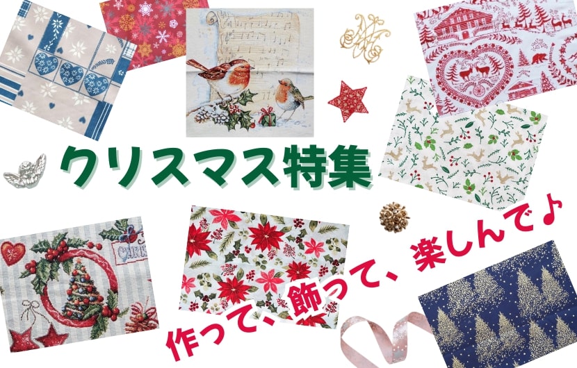 「F在庫」はぎれ70×50:トナカイと柊(生成りベースグリーン・ゴールド) [auti10b_19550]