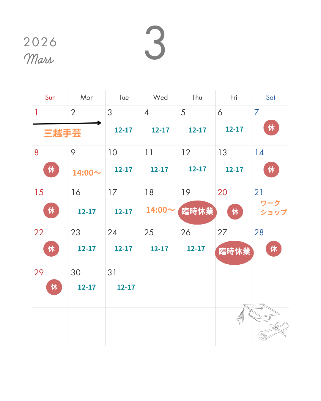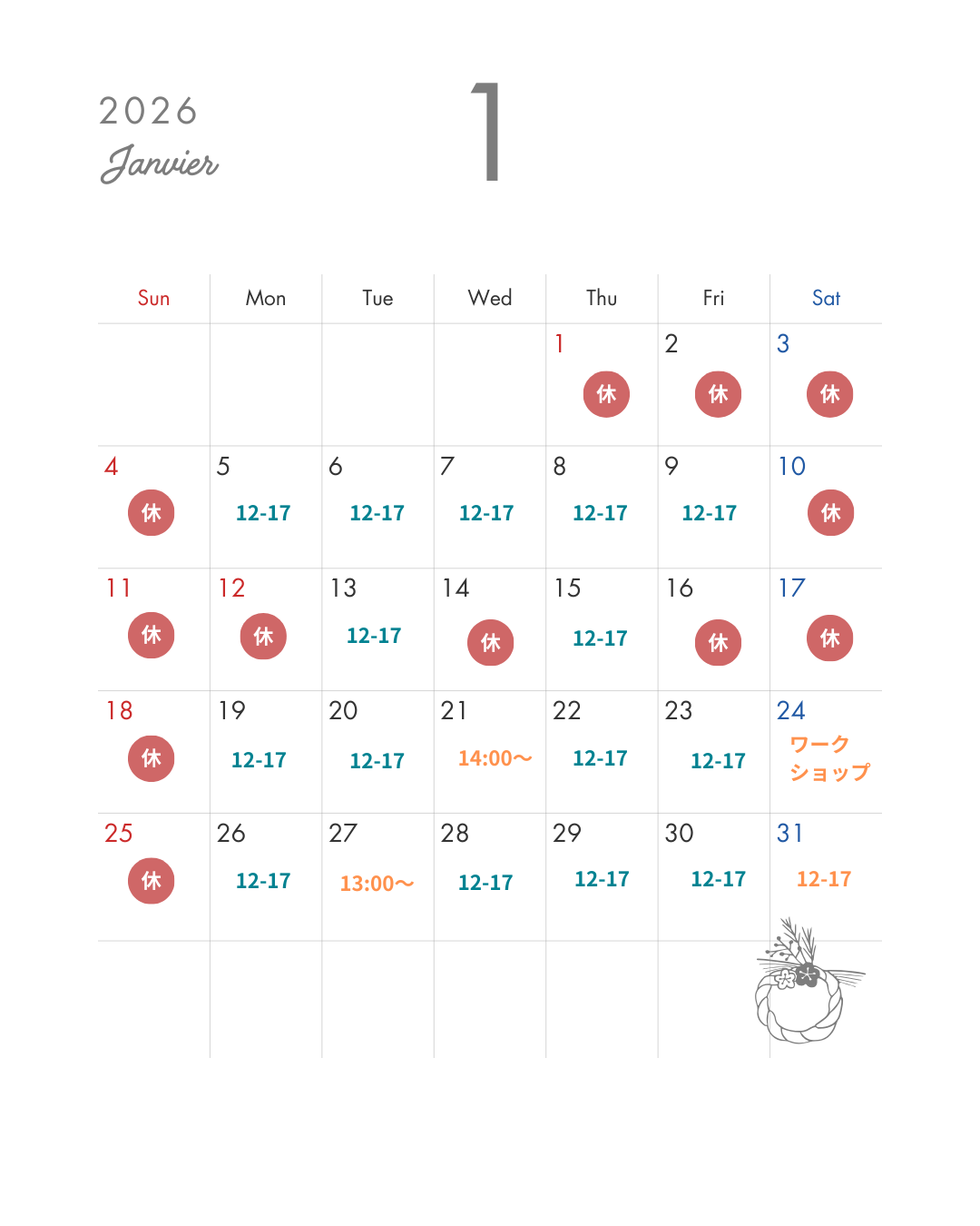営業日時:下記営業カレンダーをご参照ください