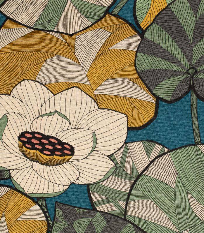 「取寄せ」布:イディリス(キャンバス、オーシャンブルーベースマスタード・グレイ)