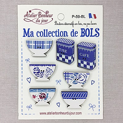 「特別取寄せ」木製飾りボタン7点セット:私のボウルコレクション(ブルー)