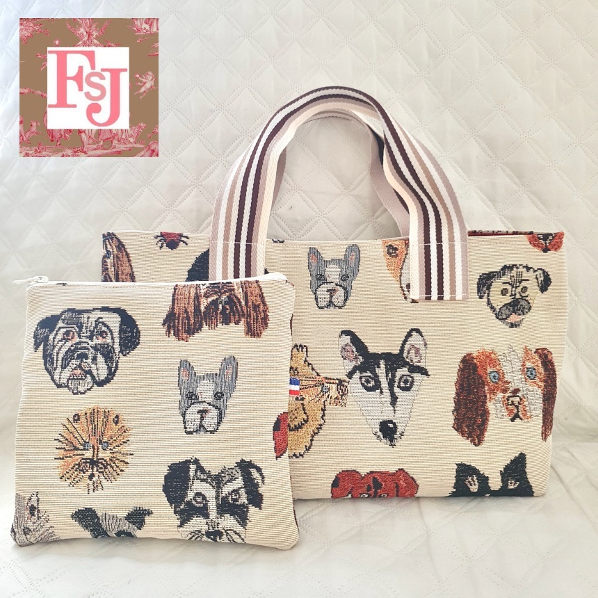いろんな種類の犬の顔がかわいくデザインされたゴブラン織りです。