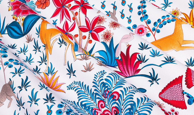 Paradis Island パラディ・アイランド(楽園の島)という名前がついた動物や花・植物がデザインされた生地です。