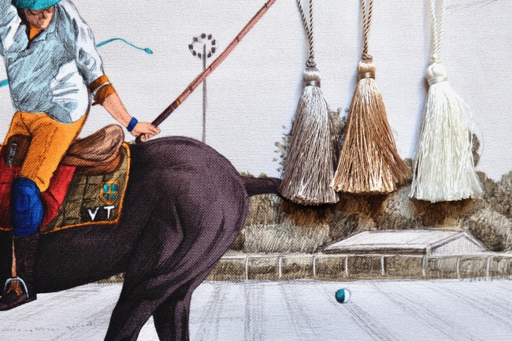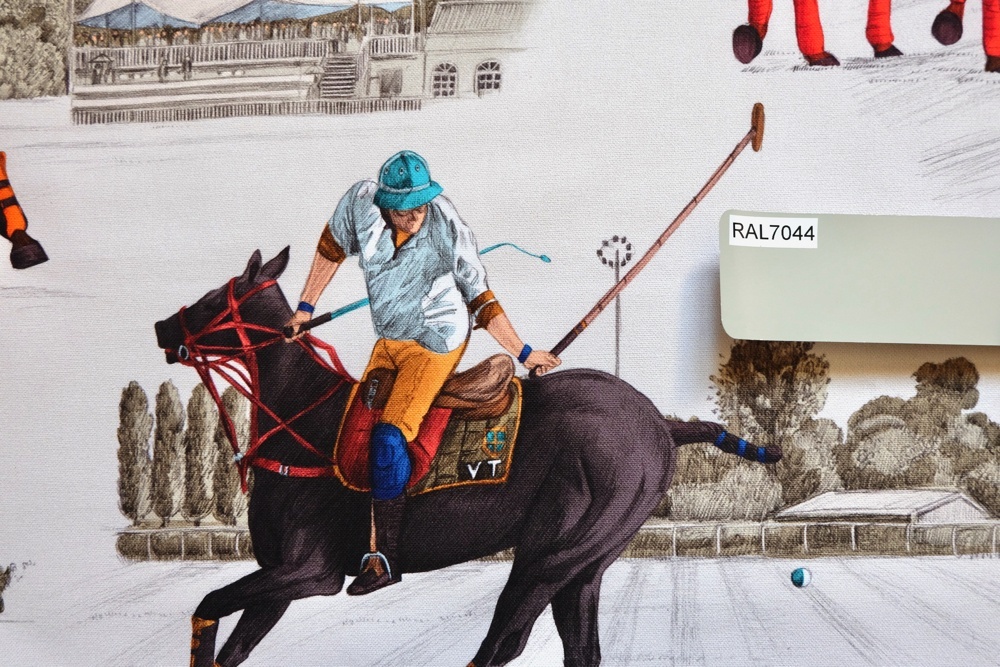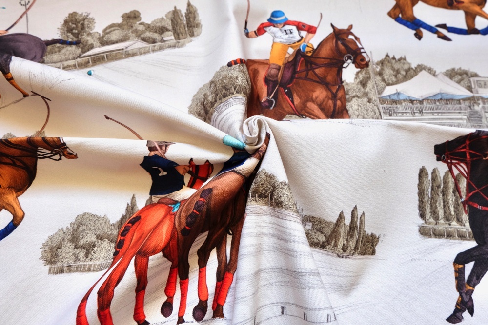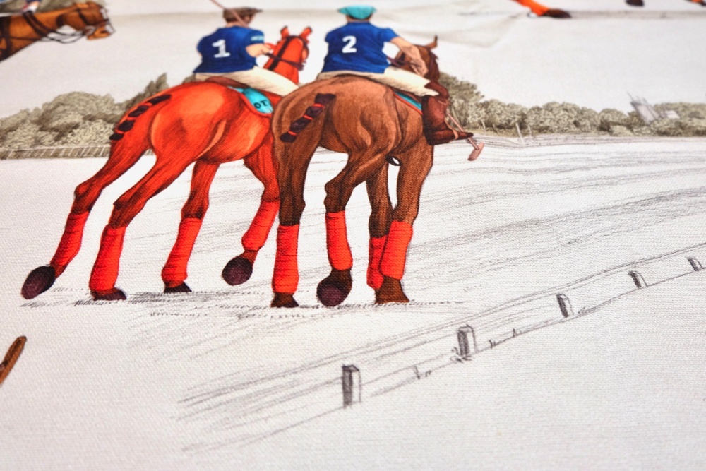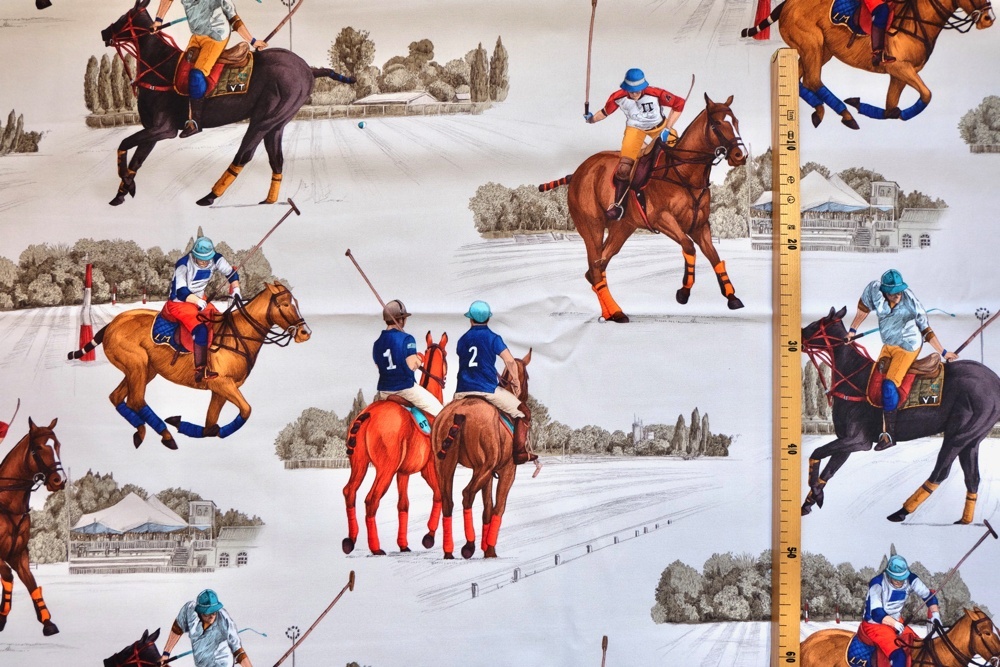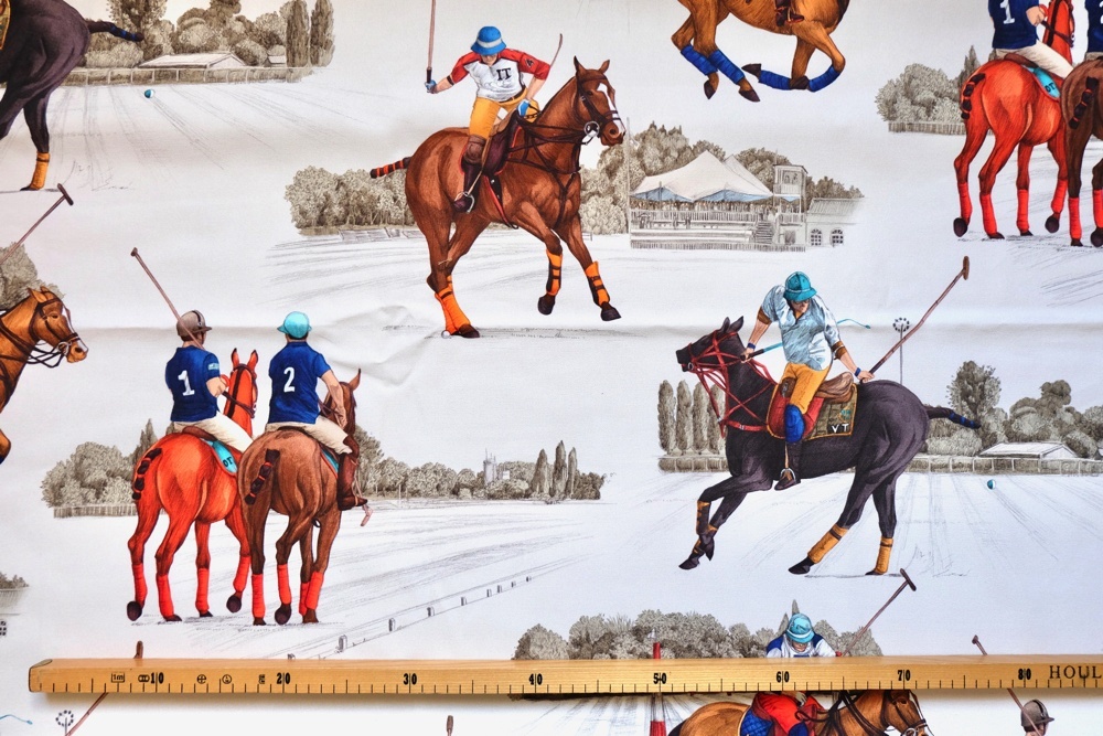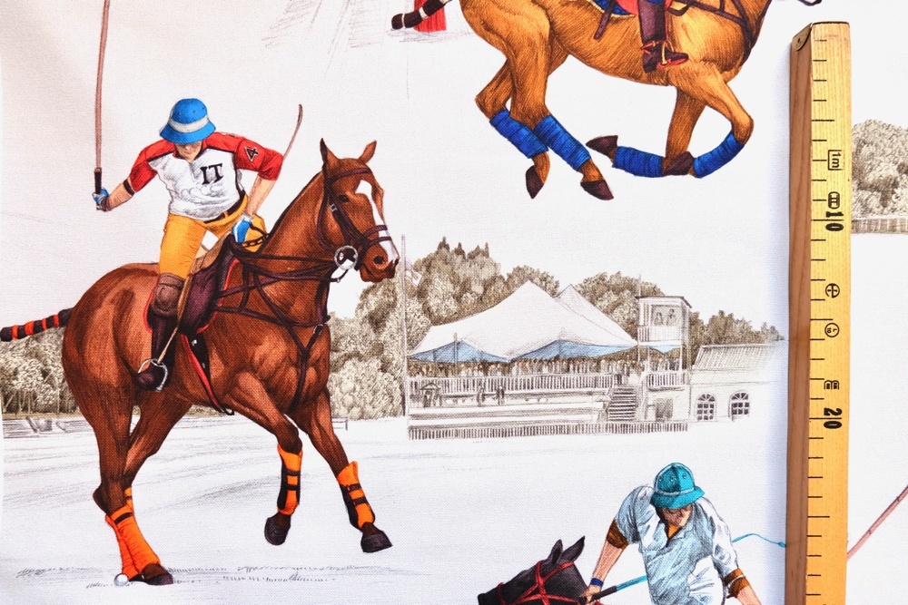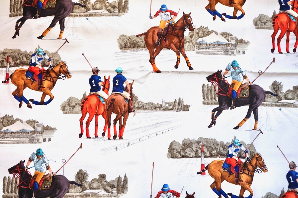 Estancia エスタンシアという名前のポロ競技柄トワルドジュイデザイン生地です。