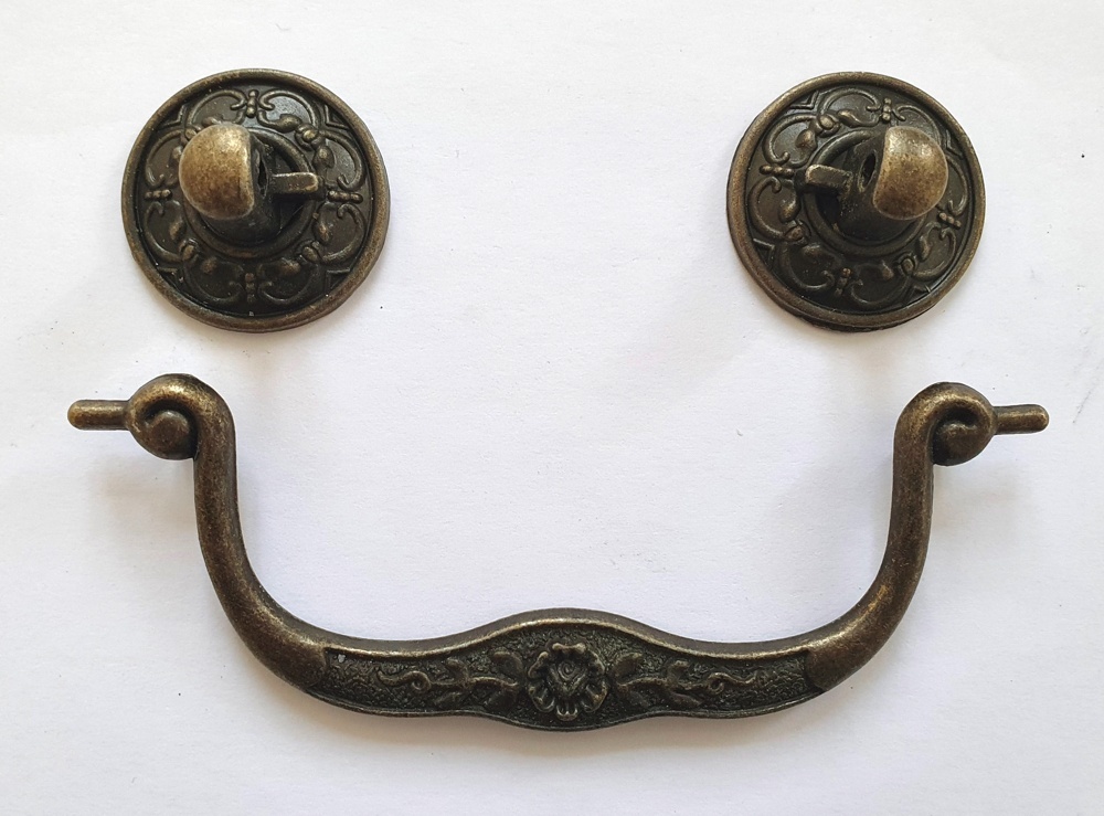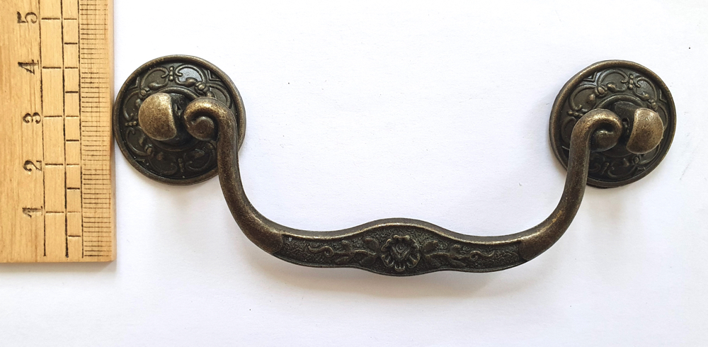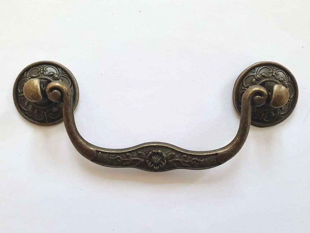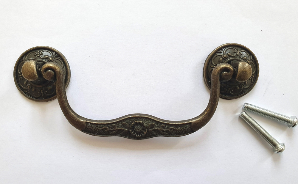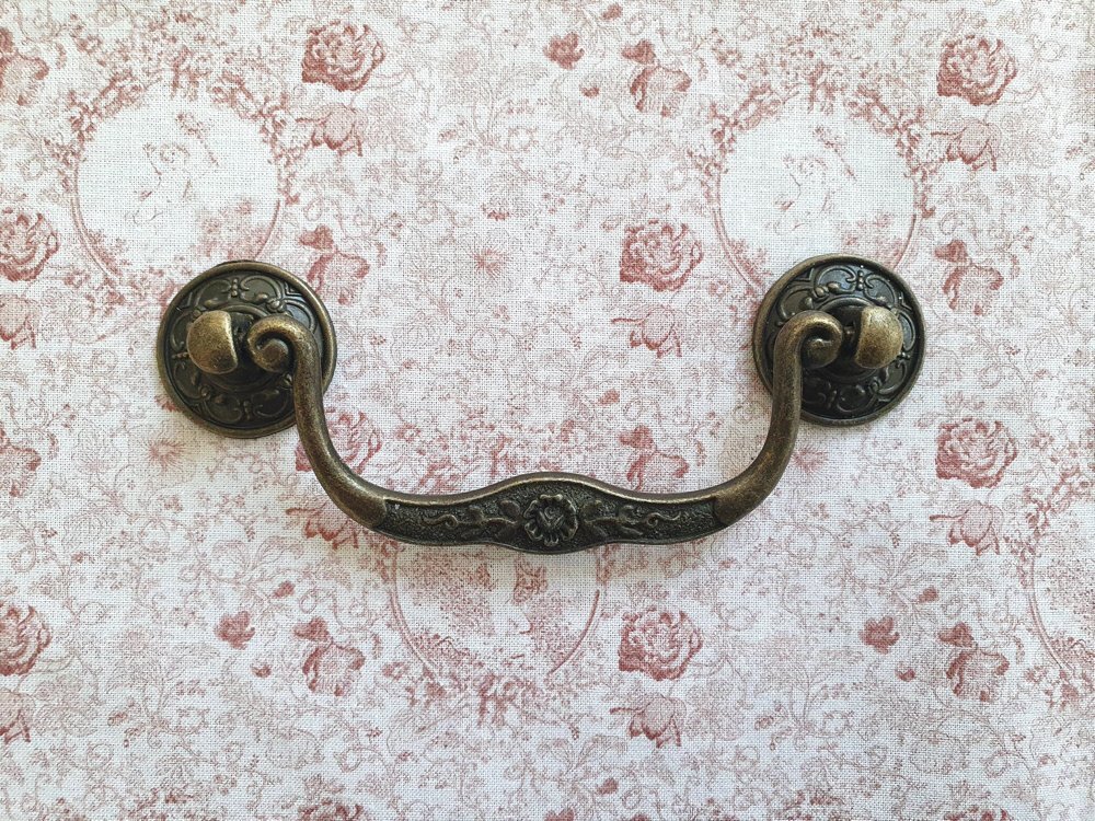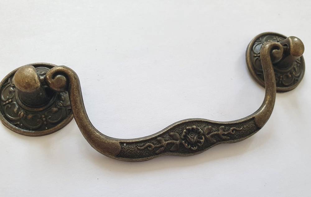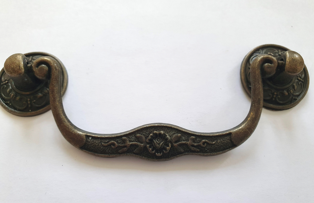 持ち手にバラの小花が飾られたアンティークゴールド色の取っ手です。