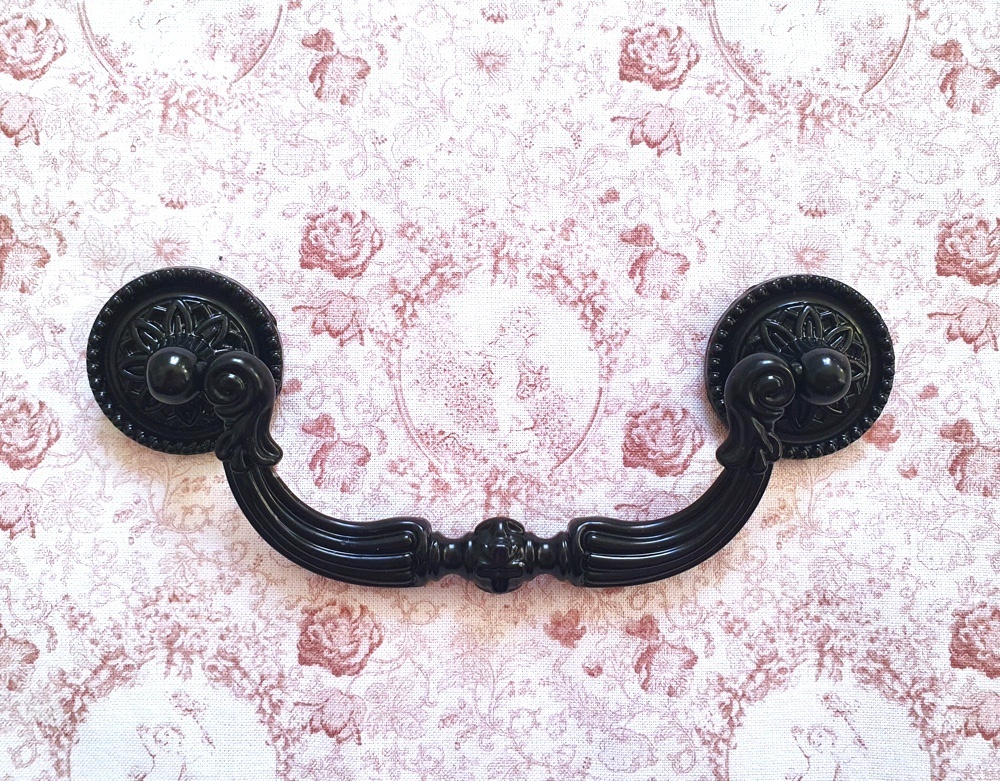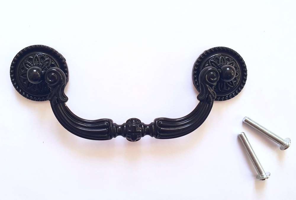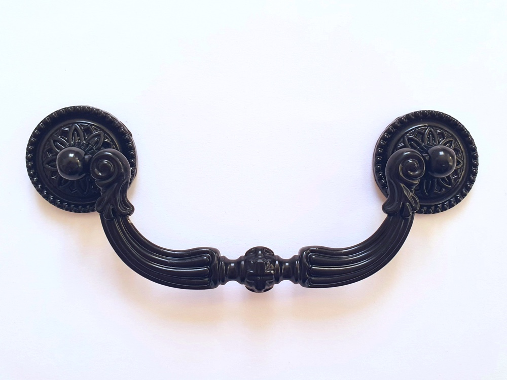 太陽のようなデザインが入った牧歌的な黒色の取っ手です。留