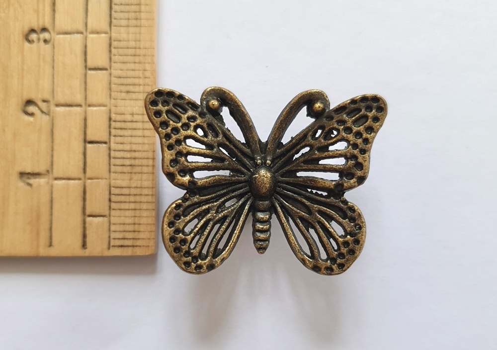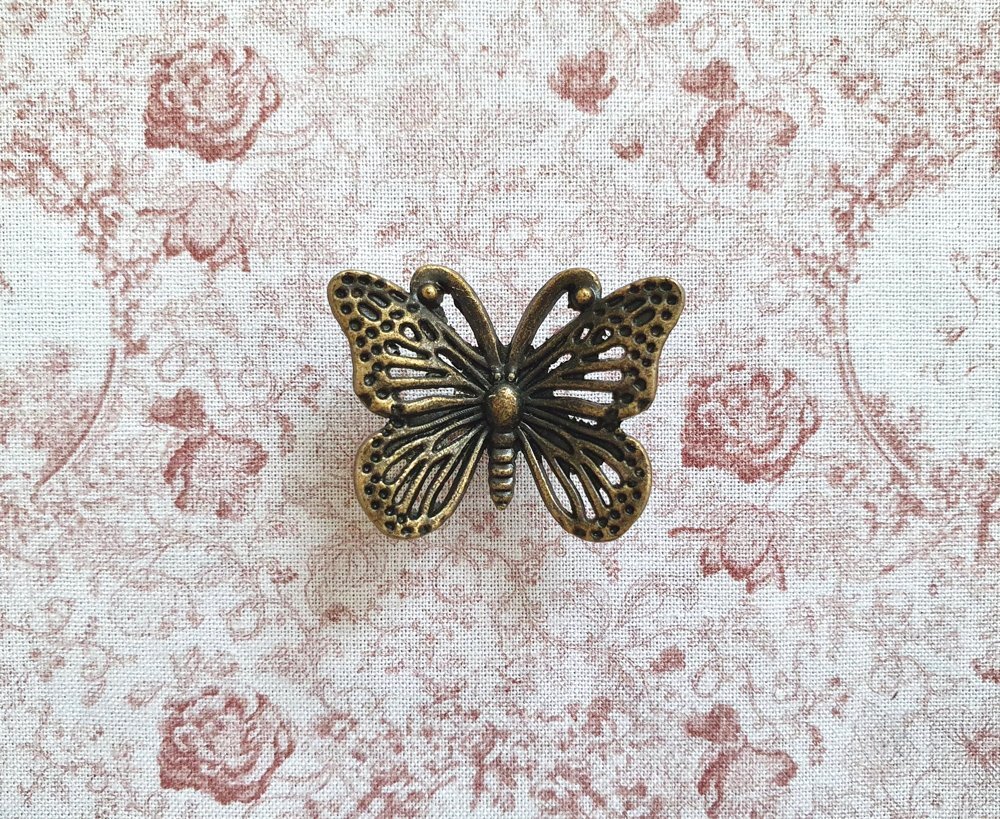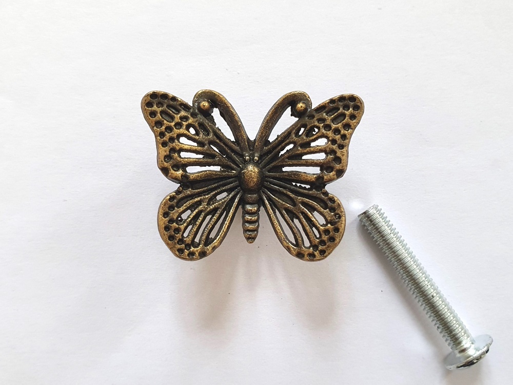- > 「F在庫」取っ手:蝶(3.2cm、アンティークゴールド)
