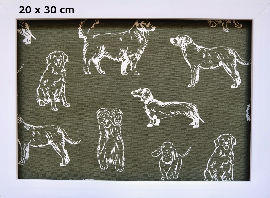 「F在庫」はぎれ70×50:キャンバス・シアン(犬、モスグリーンベース)