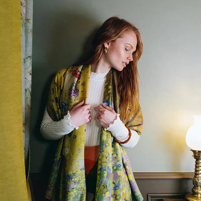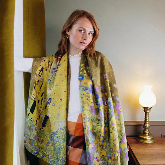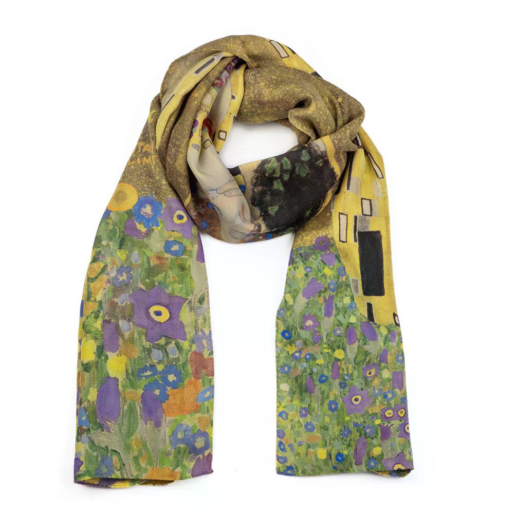 「取寄せ」ウールシルクストール 67×180cm :クリムト・接吻(ベージュ) [mlau40b_42000]