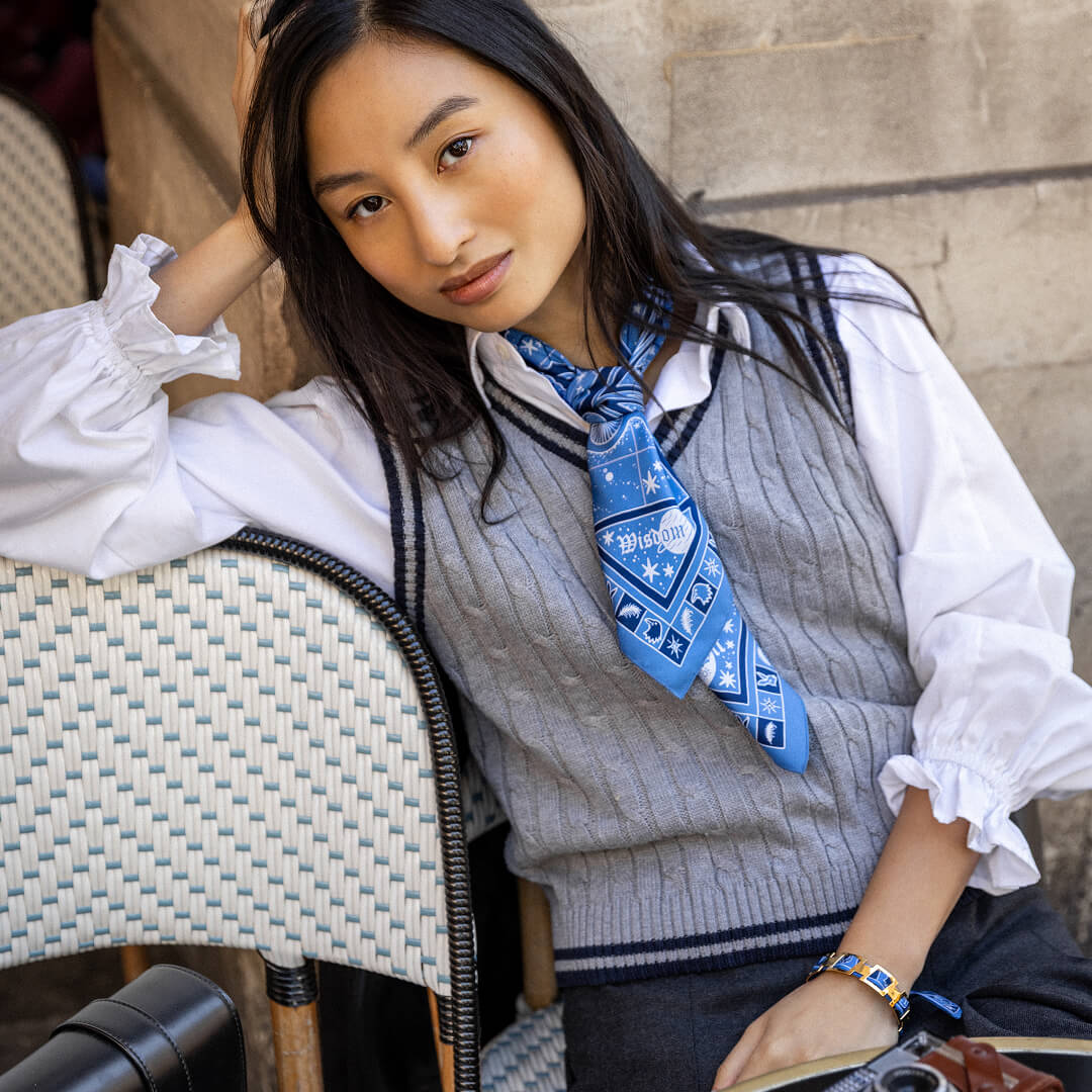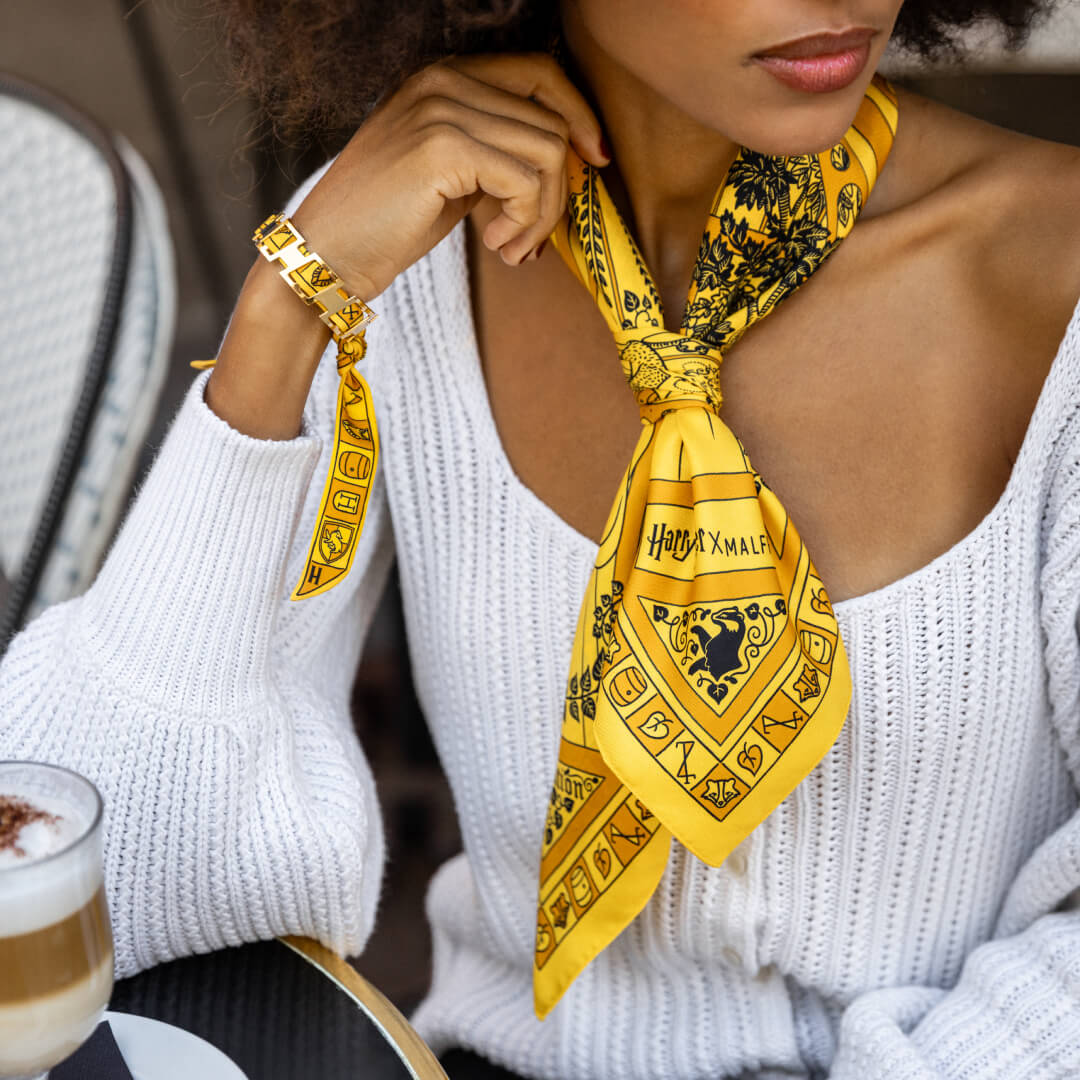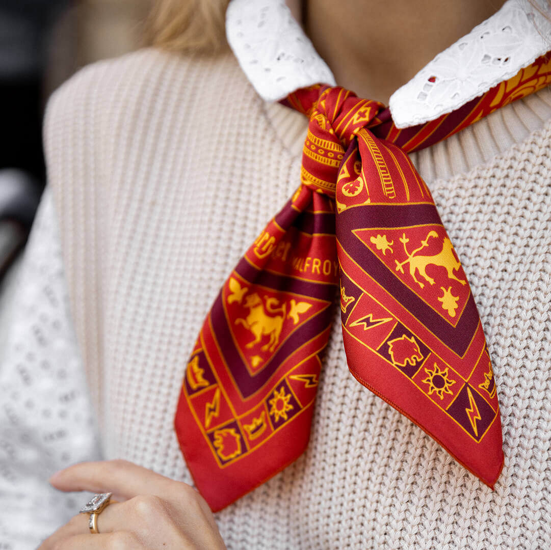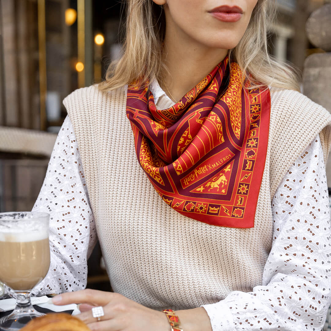 このスカーフは寮の色を基調とした、エレガントで控えめな旗印となっています。