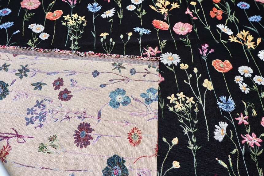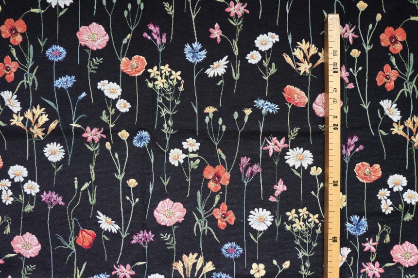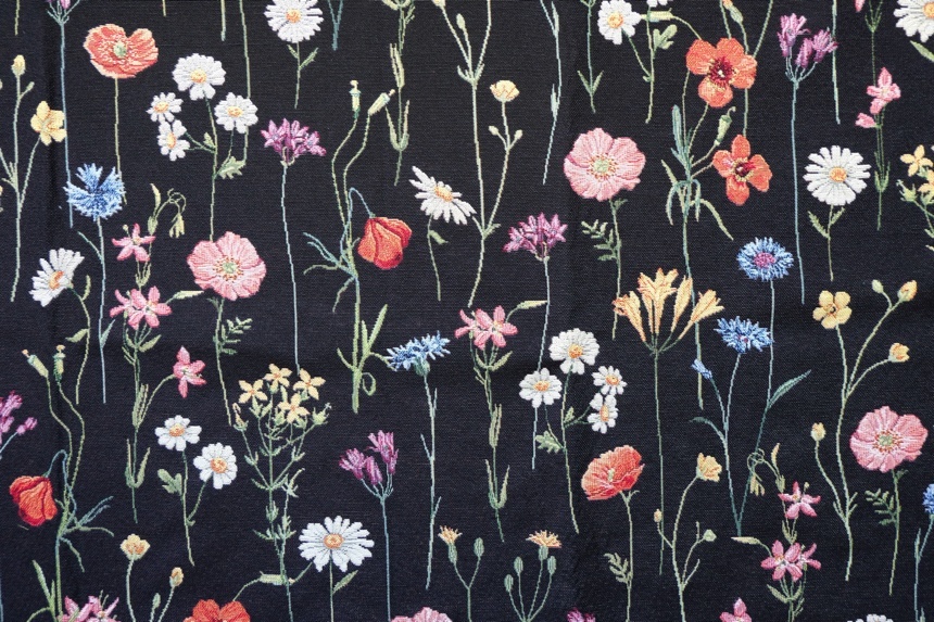 「F在庫」はぎれ70×50:ゴブラン織りプレーリー・フルーリー(黒)