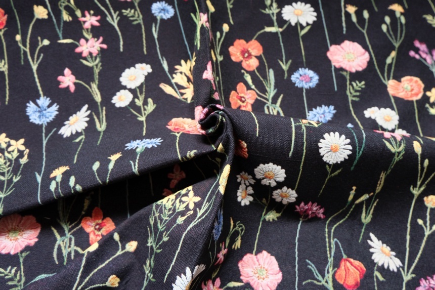 「F在庫」はぎれ70×50:ゴブラン織りプレーリー・フルーリー(黒) [auti62n_19700]