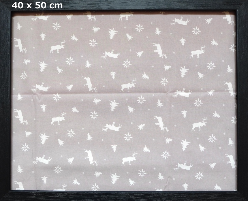 「移動中」はぎれ80×50:トナカイとエーデルワイス(グレージュベース)