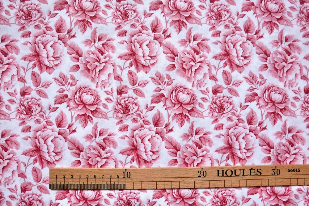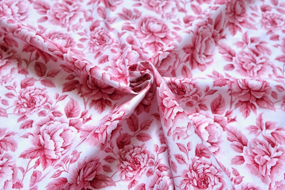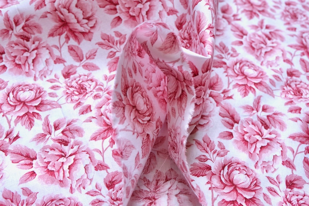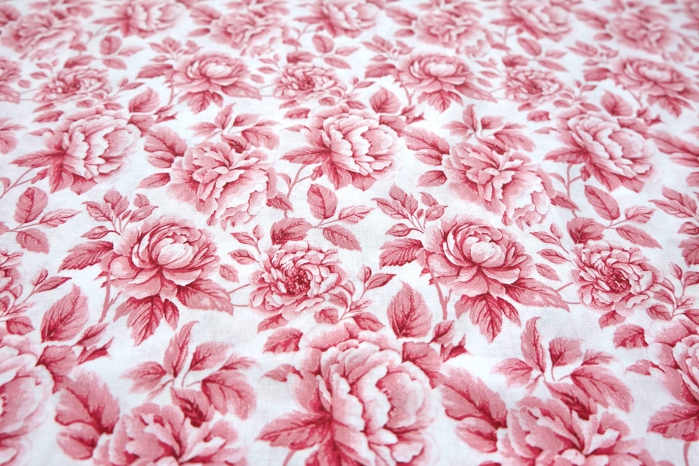 バラの花柄がトワルドジュイ風にデザインされた生地です。