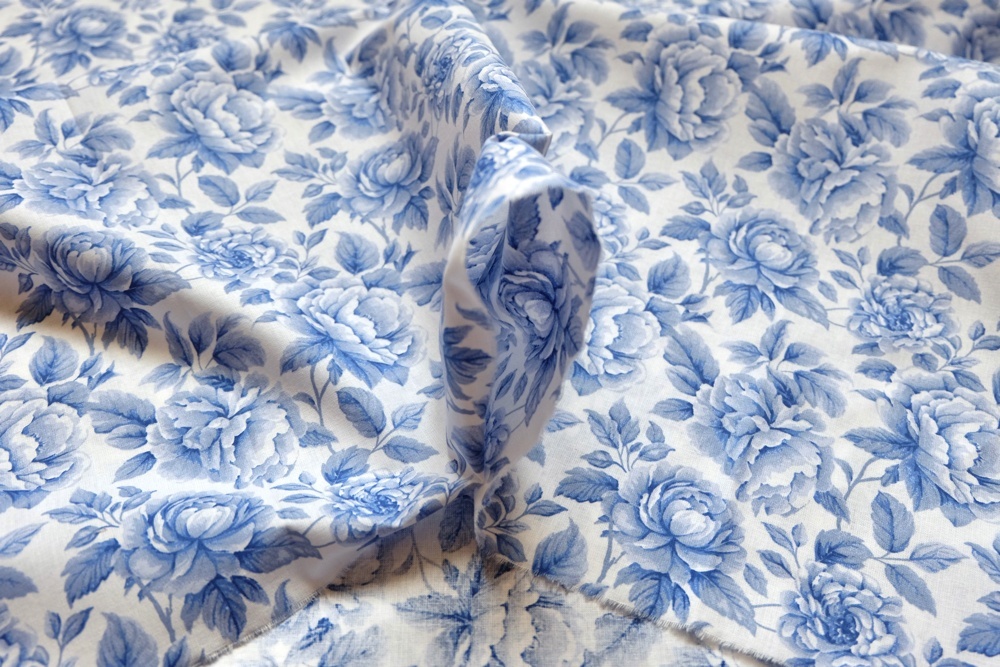 - > 「F在庫」はぎれ75×50:コバルト(バラ、ブルー)