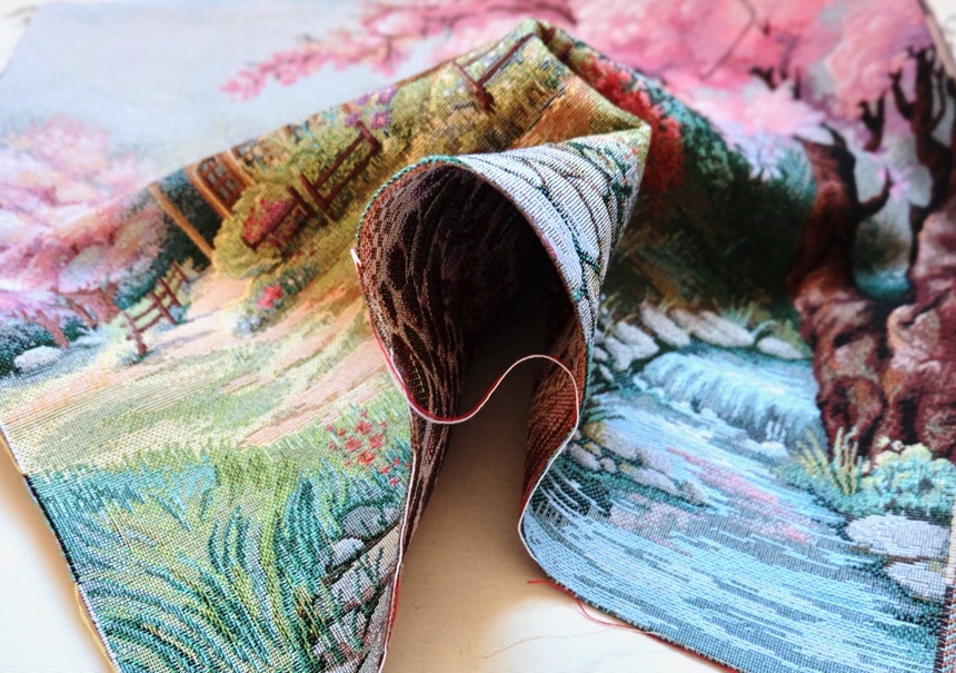 「移動中」はぎれ45×45:ファンタジー(家、花の木) [auti60_19840]