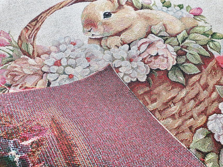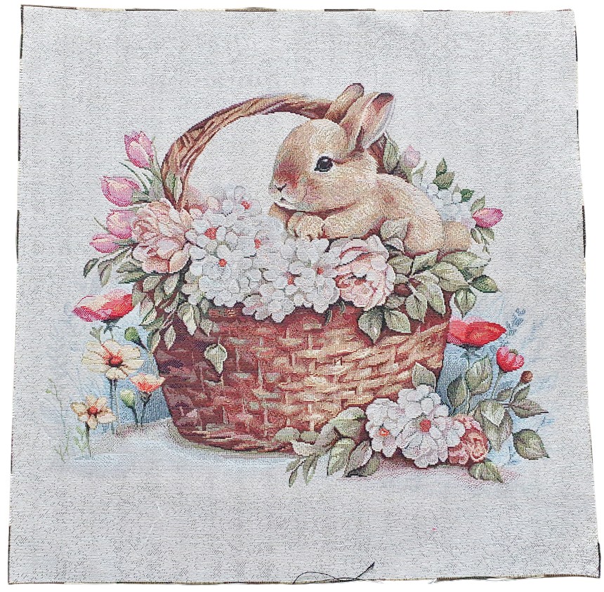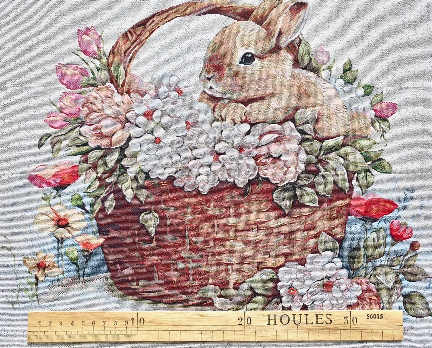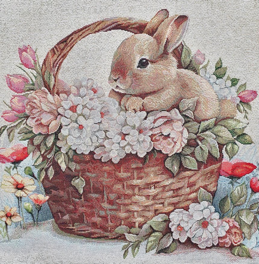「移動中」はぎれ45×45:ラパン&パニエ(うさぎ、カゴ)