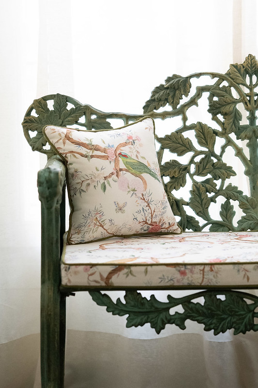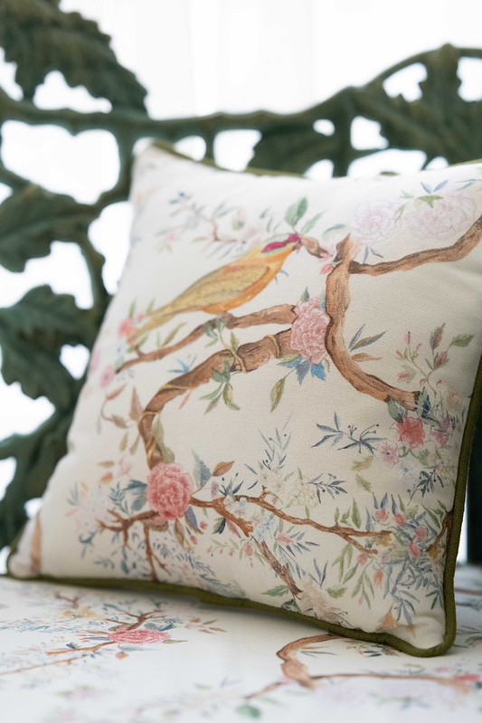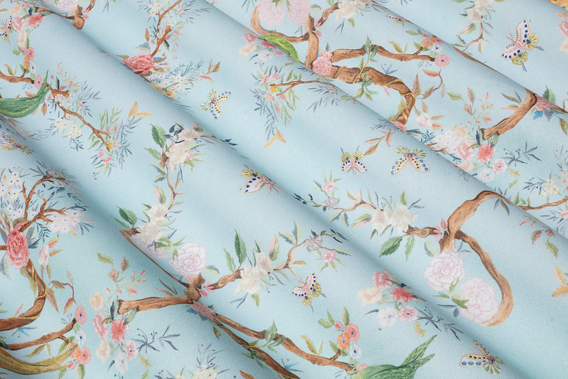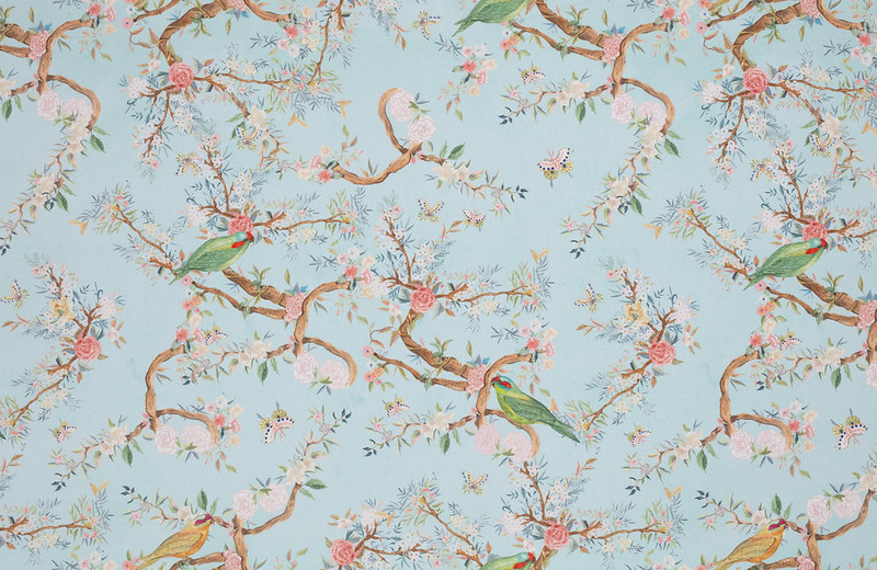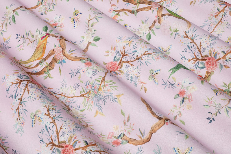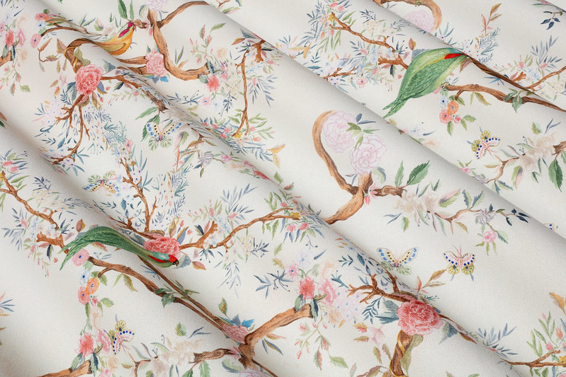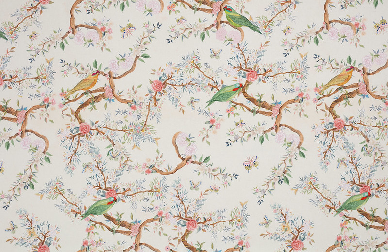 Birds バーズ(鳥)という名前の鳥と花のトワルドジュイ風デザイン生地です。