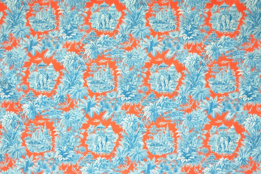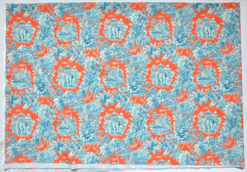 「F在庫」はぎれ75×50:ミニ・マハラニ(オレンジベースブルー) [mfti11j_20070]
