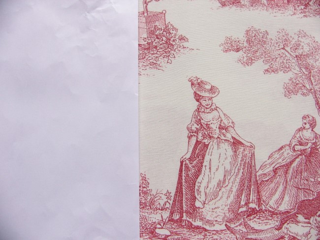白ベースに赤でトワルドジュイのデザインが施されています。